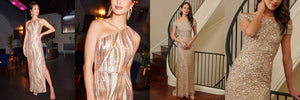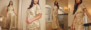 Shannon wore (and looked stunning in) our floral metallic fit-and-flare dress, “perfect,” she told us, for a small outdoor wedding. The dress is designed in lace with a just-right midi length. To make the look truly her own, Shannon added a belt from Etsy and a few favorite pieces of jewelry to highlight the neckline of the dress. We don’t need to tell you that she DIY’d all the wedding florals and boutonnieres. (Of course she did.)