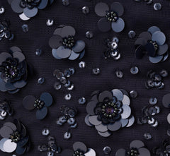 3D Floral Hand-Beaded One-Shoulder Long Column Gown In Dusty Navy 5