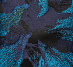 Smart, sophisticated, and stunning, this women's midi dress uses luminous blue jacquard fabric to create a unique and dimensional silhouette. Internal boning and a back zipper give the strapless bodice a structured and fitted look with a wide inverted pleat at the center waist creating a flared skirt with a high-low hem. This lovely blue dress is an instantly glamorous look for when you want something elevated and upscale.