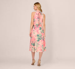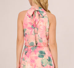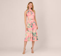 Boasting a bold-hued floral print, this midi dress is a gorgeous choice for daytime or evening events. This halter dress features a blouson bodice with shirred details, a mock neckline, and a soft skirt. Crafted from lovely chiffon fabric with an allover floral print, this pull-on dress has anelastic waistband making it a comfortable look for all body types. Fully lined, this midi length dress will shine from daytime outings to semi-formal events with the right accessories.