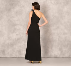Couture-inspired accents give this stunning black mermaid gown an elevated edge. The bodice and strap are adorned with taffeta pleating in a sculpted drape for a dramatic and dynamic moment. The sleek mermaid silhouette balances the design with a back zipper closure ensuring a perfect fit. When you need eveningwear that stands out for all the right reasons, this is the dress for you.