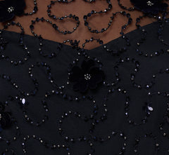 Classically elegant with an extra touch of sparkle, this fit and flare midi dress cuts a striking figure. The mesh overlay creates an illusion sweetheart neckline with long sheer sleeves. The allover beaded embellishment is accented with 3D flower details in paillette sequins and velvet for texture and dimension. Perfect for your next special occasion or big event, this long sleeve cocktail dress will turn heads anywhere you wear it.