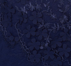 Dainty floral details lend their charms to this elegant evening gown. This formal dress features an off-the-shoulder neckline trimmed in ruffles, a fitted bodice, and a mermaid skirt. Crafted from floral embellished mesh, this fully-lined dress has minimal stretch. A zipper closure at the centerback completes this formal dress. Paired with metallic high heels and a matching clutch, this ladylike dress is a pretty look for black-tie and formal events.