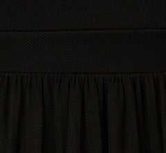 This black maxi evening dress features a dramatic A-line silhouette with a sweeping tiered skirt in mesh fabric. Spaghetti straps and a notched neckline create a delicate face-framing effect. A darted bust and back zipper closure ensure a fitted look to the bodice. Classically glamorous, this stunning black gown is perfect for all your formal and black tie events.